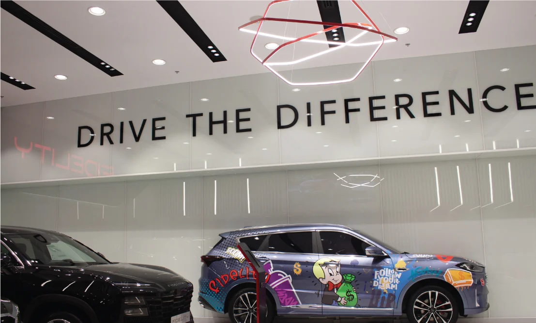 استفاده از خطوط ساده، رنگ‌های خنثی و متریال‌های باکیفیت، در کنار نورپردازی هوشمندانه و المان‌های گرافیکی، باعث شده تا تجربه‌ای متفاوت برای بازدیدکنندگان فراهم شود. در این فضا، خودرو نه‌تنها به‌عنوان یک وسیله، بلکه به‌عنوان بخشی از یک سبک زندگی به نمایش درآمده است.